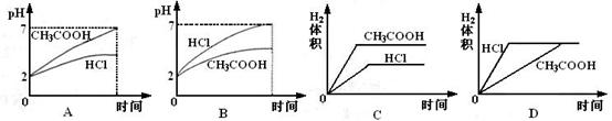 13. 在体积均为1L,pH均等于2的盐酸和醋酸溶液中,分别投入0.23g Na,则下图中比较符合反应事实的曲线是 ( )