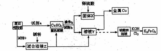 30.(14分)根据下列流程处理废旧电路板来回收金属Cu,并制得高铁酸钾(K2 FeO4)。