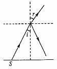 (1)一足够大的水池内盛有某种透明液体,液体的深度为H,在水池的底部放一点光源S,其中一条光线以30°入射角射到液体与空气的界面上,它的反射光线与折射光线的夹角为105°,如图所示。求: