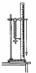 一端的指针恰好落在刻度尺上。当弹簧自然下垂时,读取指针指示的刻度数值L0;当