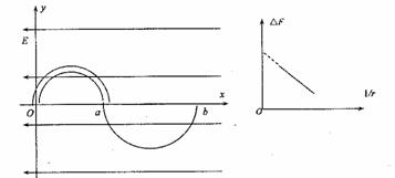 (3)现在O、b两点各放一个压力传感器,并计算出压力差△F;改变半径r的大小,重复实验,最后绘得△F一1/r图线如图所示,求直线在△F轴上的截距。