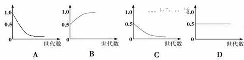 3.人工建立一个数量足够大的果蝇实验群体,雌雄个体数量相当且均为杂合子。已知某隐性基因纯合致死,预测该隐性基因频率的变化曲线应该是(纵坐标表示该隐性基因频率)