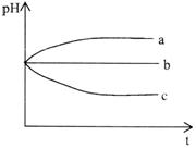将pH相同的三种酸性溶液露置于空气中一段时间后,溶液的pH随时间的变化情况如图所示: