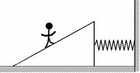如图所示,在光滑水平面上,用弹簧水平连接一斜面,弹簧的另一端固定在墙上,一人站在斜面上,系统静止不动。当人沿斜面加速上升,则( )