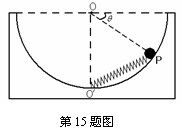 15.如图所示,质量为M、半径为R、内壁光滑的半球形容器静放在粗糙水平地面上,O为球心.有一劲度系数为K的轻弹簧一端固定在半球底部