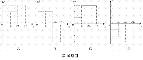 如图所示,空间分布着宽为L,垂直于纸面向里的匀强磁场.一金属线框从磁场左边界匀速向右通过磁场区域.规定逆时针方向为电流的正方向,则感应电流随位移变化的关系图(i-x)正确的是