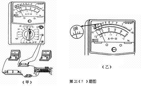 (1)(4分)A同学准备用伏安法测量一只未知阻值的电阻,部分接线完成后,B同学找来多用电表粗测其电阻,如图(甲)所示,请找出图示操作中的一个错误: ▲ .