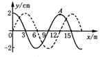 一列简谐横波t=0的波形如图中实线所示,经过时间t变成图中虚线所示的波形.已知波向左传播,时间t小于1个周期,图中坐标为(12,2)的质点A的振动状态经时间t传到质点B,则