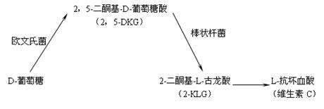 自然界中的两种微生物,可以通过各自不同的作用将培养液中的葡萄糖转化为维生素C,其过程如下图所示。在欧文氏菌中无2,5-二酮基-D-葡萄糖酸还原酶(2,5-DKG还原酶),不能将2,5-二酮基-D-葡萄糖酸转化为2-二酮基-L-古龙酸;而棒状杆菌不能直接转化D-葡萄糖。通过基因工程技术,可以改造某种细菌,仅用一步发酵即可生成2-二酮基-L-古龙酸。请根据以上信息回答下列问题。