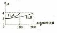 常温下,取pH=2 的两种二元酸H2A与H2B各1mL,分别加水稀释,测得pH变化与加水稀释倍数有如图所示变化,则下列有关叙述正确的是