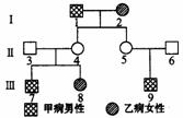 (7分)如图是具有两种遗传病的家族系谱图,家族中有的成员患甲种遗传病(设显性基因为B,隐性基因为b),有的成员患乙种遗传病(设显性基因为A,隐性基因为a),如系谱图所示。现已查明Ⅱ6不携带致病基因。问: