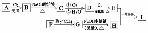 A经下列转化关系可以合成高分子化合物I。其中B分子中只含有一个氯原子;F与A最简式相同,且F属于链状烃中最简单的一种。