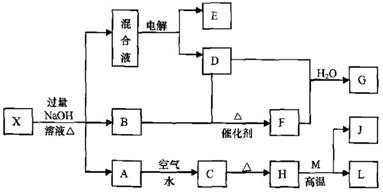 29.(14分)有一化合物X,其水溶液为浅绿色,可发生如下的转化关系(部分反应物、生成物已略)。其中,B、D、E、F均为无色气体,M、L为常见的金属单质,C为难溶于水的红褐色固体。在混合液中加入BaCl2溶液可生成不溶于稀盐酸的白色沉淀,H和M反应可放出大量的热。