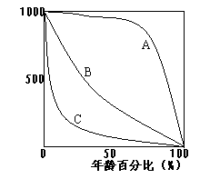 (2)分析北极熊种群的存活曲线,正常情况下,其存活曲线应如右图________所示,由于环境破坏和人为捕杀,北极熊种群存活曲线向B所示类型转化,原因是_____________________________。