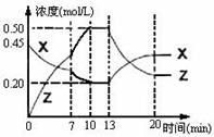 bZ(g);△H<0。右图是容器中X、Z的物质的量浓度随时间变化的曲线。下列说法正确的是( )