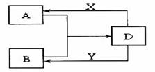 (14分)A、B、D、X、Y是由短周期元素组成的化合物,其中X、Y分别是常见的强酸、强碱。它们存在如下图转化(部分生成物和水略去)。