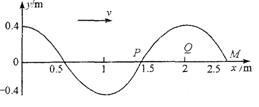 一简谐横波沿x轴的正方向以5m/s的波速在弹性绳上传播,振源的周期为0.4s,波的振幅为0.4m。在t0时刻,波形如图所示,则在t0+0.3s时刻( )