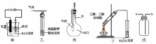 ③装置丙可验证HCl气体在水中的溶解性 ④装置丁可用于实验室制取乙酸乙酯