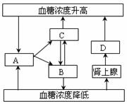 31.(8分)下图是人体血糖调节示意图,A表示有关的结构, B、C、D为激素,请回答有关问题: