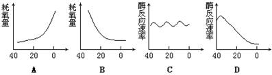 (2)若假设成立,下丘脑是其体温调节中枢,以下坐标图表示小白鼠的代谢状况与环境温度的关系(其中横轴表示环境温度,纵轴表示小白鼠的耗氧量或酶的反应速率)。则符合甲组鼠生理状况的是 ` ____ ;符合乙组鼠生理状况的是 _ 。