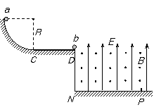 m = 2.0×10-6kg的小球a和b,a球不带电,b球带q = 1.0×10-6C的正电,并静止于水平面右边缘处。将a球从圆弧轨道顶端由静止释放,运动到D点与b球发生正碰,碰撞时间极短,碰后两球粘合在一起飞入复合场中,最后落在地面上的P点。已知小球a在水平面上运动时所受的摩擦阻力f = 0.1mg, PN =
