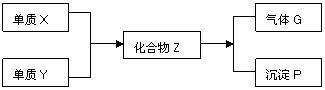 13.在一定条件下,金属单质X和非金属单质Y反应,生成化合物Z,Z与水作用可生成气体G和白色沉淀P(如下框图所示),已知气体G与空气之密度比约为1.17。