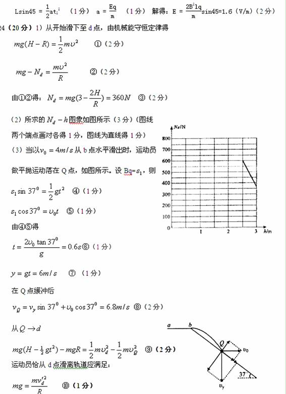 可见滑板运动员不会从圆弧最高点d滑离轨道。(1分)