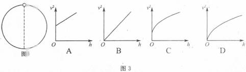 17.如图3所示,一个小球套在竖直放置的光滑圆环上,小球从最高点向下滑动过程中,其线速度大小的平方v2随下落高度h的变化图象可能是图中的 ( )