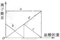溶液中缓慢地滴加稀盐酸,并不断搅拌。随着盐酸的加入,溶液中离子数目也相应的发生变化(如下图所示)。下列四条曲线与溶液中的离子的对应关系,完全正确的是( )