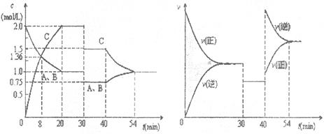 ,达到平衡后,只改变反应的一个条件,测得容器中物质的浓度、反应速率随时间变化如下图所示,下列说法正确的是( )