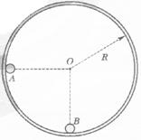 (2)如图,半径为R的光滑圆形轨道固定在竖直面内。可当做质点的小球A、B质量分别为m、3m,A球从左边与圆心等高处由静止开始沿轨道下滑,与静止于轨道最低点的B球相撞,第一次碰撞后A、B球能达到的最大高度相同,碰撞中无机械能损失。重力加速度为g。试求:
