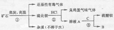 重晶石矿的主要成分为硫酸钡,纯净的硫酸钡才能供医用作“钡餐”,在对某些内脏器官进行X射线透视时服用。硫化钡是可溶于水的盐。讨论用重晶石矿制硫酸钡,设计流程如下: