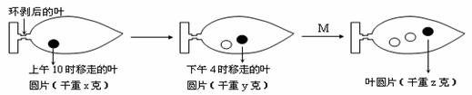 (6)某同学欲测定植物叶片叶绿体的光合作用速率,做如图所示实验。在叶柄基部做环剥处理(仅限制叶片有机物的输入和输出),于不同时间分别在同一叶片上陆续取下面积为1cm2的叶圆片烘干后称其重量。M处的实验条件是将整个实验装置遮光3小时(不考虑取叶圆片后对叶生理活动的影响和温度微小变化对叶生理活动的影响)。