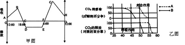 Ⅱ.若测定A、B两种植物的叶片在不同温度下光合作用和呼吸作用速率结果如乙图所示。对照实验是在30℃时进行的。请回答:(注:每一项温度处理的光合作用和呼吸作用速率,以与30℃时的数据比较所得的百分率表达高☆考♂资♀源?网。)