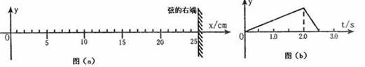 17、将一根长约为100cm的均匀弦线,沿水平的x轴放置,拉紧并使两端固定,如图(a)所示。现对离固定的右端25cm处的弦上一点O施加一个沿垂直于弦线方向(即y轴方向)的扰动,其位移随时间的变化规律如图(b)所示,该扰动将沿弦线传播而形成波(孤立的脉冲波)。已知该波在弦线中的传播速度为2cm/s,下图中表示自O点沿弦右传播的波在t=2.5s时的波形图是(高☆考♂资♀源?网