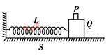 ,其中T是简谐运动的周期,k是轻质弹簧的劲度系数,m是振子的质量,衡水市滏阳中学的同学以该公式为原理设计了测量轻质弹簧劲度系数k的实验装置(如图所示),图中S是光滑水平面,L是轻质弹簧,Q是带夹子的金属盒;P是固定于盒上的遮光片,利用该装置和光电计时器能测量金属盒振动时的频率。