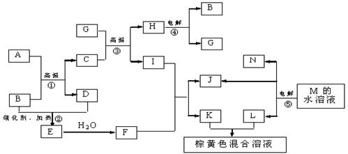 28、(12分)根据反应框图填空,已知,其中B、G、I、J、L均为常见单质,B、D、J、L为气;A是生产F的重要矿石原料的主要成份,其相对分子质量为120,是离子化合物,阴离子中各原子都达到8电子稳定构型;M溶液焰色为黄色。