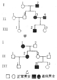 33.(8分)如图所示甲、乙两图分别是甲、乙两种遗传病的系谱图,据图回答问题。
