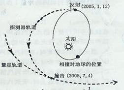 2005年北京时间7月4日下午1时52分,美国探测器成功撞击“坦普尔一号”彗星,并投入彗星的怀抱,教育博客实现了人类历史上第一次对彗星的“大碰撞”,如图所示。教育博客设“坦普尔一号”彗星绕太阳运行的轨道是一个椭圆,其运行周期为5.74年,则下列说法正确的是教育博客