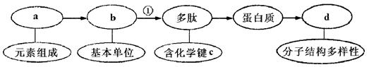 C.d表示DNA分子结构的多样性 D.进行①过程的场所是核糖体