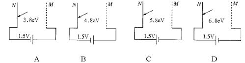 为金属网,它们分别与电池的两极相连,各电池的电动势和极性分别在图中标出,已知金属钨的逸出功为