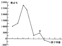 少一个电子层,E所在周期的各元素单质沸点变化如下图(元素按原子序数递增顺序连续排列),B、C两种元素分别能与A形成等电子的