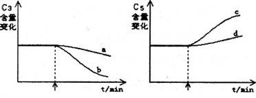 5.如图表示两株生活在适宜条件下的植物,在箭头处将两株植物移入一个密闭、干旱的环境中,并给予强光处理,其体内C3和C5含量的变化情况.以下叙述正确的是[ ]