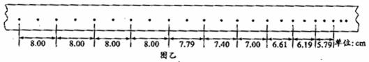 车静止时再关闭打点计时器(设小车在整个过程中小车与纸带所受的阻力恒定)。在上述过程中,打点计时器在纸带上所打的部分点迹如图乙所示(已知纸带左端与小车相连)。请分析纸带数据,回答下列问题:(计算结果均保留三位有效数字)