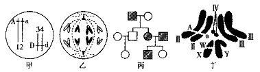 (D)丁图表示某果蝇染色体组成,其配子基因型有AXW、aXW、AY、aY四种