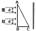 的紫,红两束光垂直照射三棱镜的一个直角边