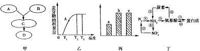 D.图丁中,部分细菌、蓝藻可以完成①过程,④过程需氧,②过程不需氧