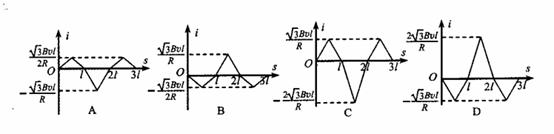 的两个有界匀强磁场,磁场的磁感应强度大小均为B,方向相反。线框运动方向始终与底边平行且与磁场边界垂直。取顺时针方向的电流为正,从图示位置开始,线框中的感应电流