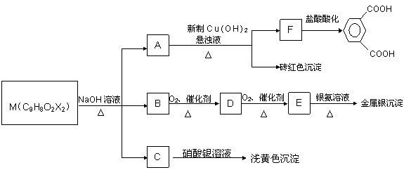 现有分子式为C9H8O2X2(X为一未知元素)的有机物M,可在一定条件下发生下图所示的一系列反应:试回答下列问题: