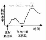 将某抗原先后两次注射到同一个小鼠体内,其体内抗体水平的变化如右图所示。下列叙述中不正确的是